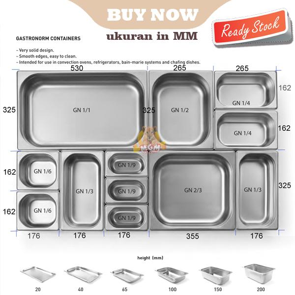 | Ukuran Lain | Tinggi 10cm, 15cm; Ukuran pan: 1/1, 1/2, 1/3, 1/6, 1/9 + tutup available |