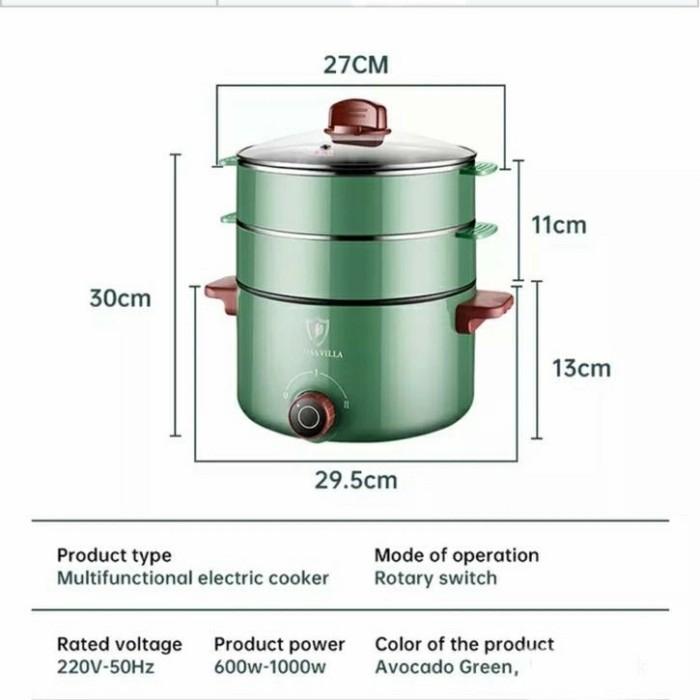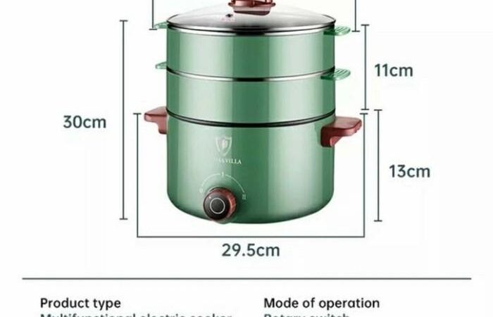 - Efisiensi Tinggi: Dua lapisan tray kukus memungkinkan memasak makanan berbeda sekaligus.