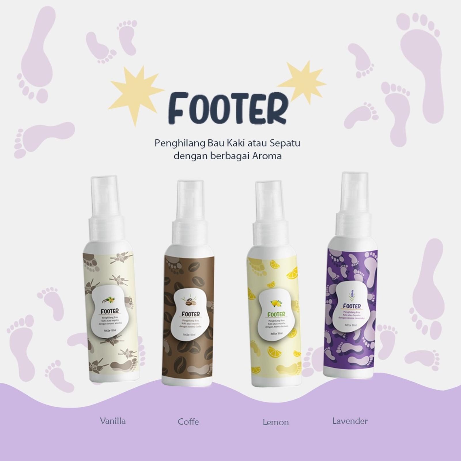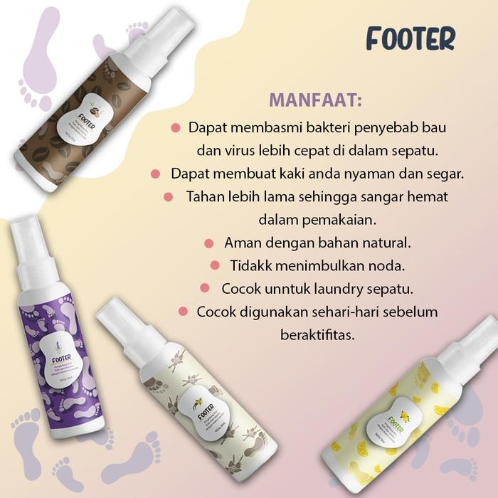 Bebaskan diri dari masalah bau kaki dan sepatu dengan Footer Spray! Formula khusus yang tidak hanya menghilangkan bau secara instan tetapi juga membasmi bakteri penyebab bau. Cocok untuk sepatu, kaki, helm, jaket, dan berbagai kebutuhan lainnya. Nikmati kesegaran aroma lemon yang menyegarkan sepanjang hari.