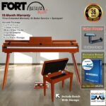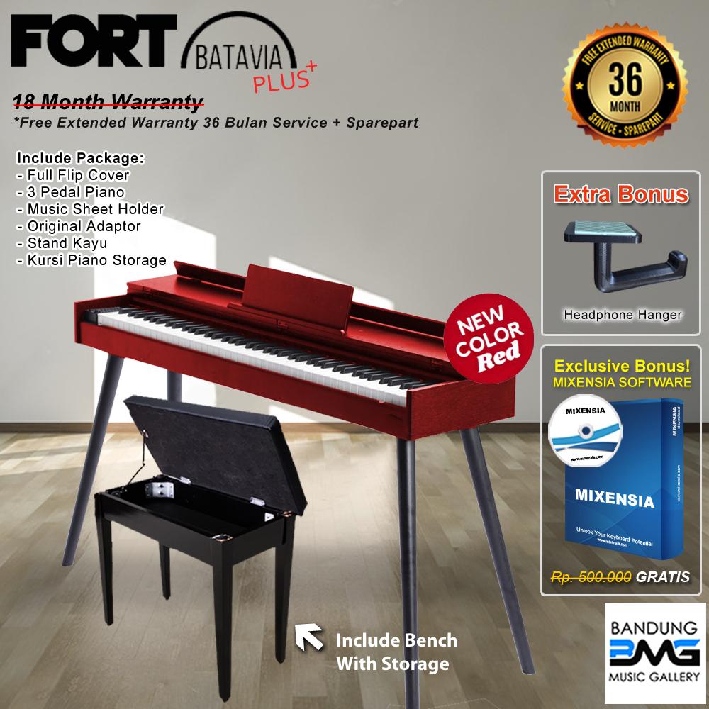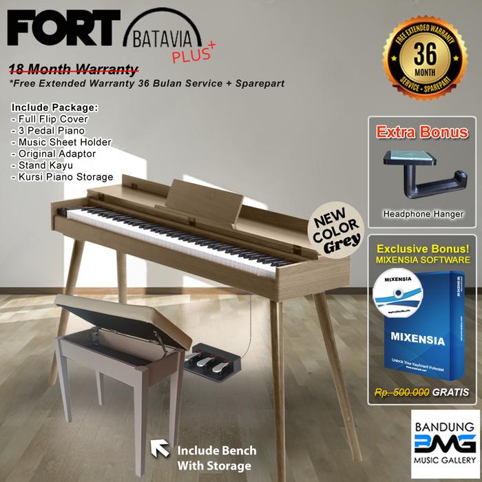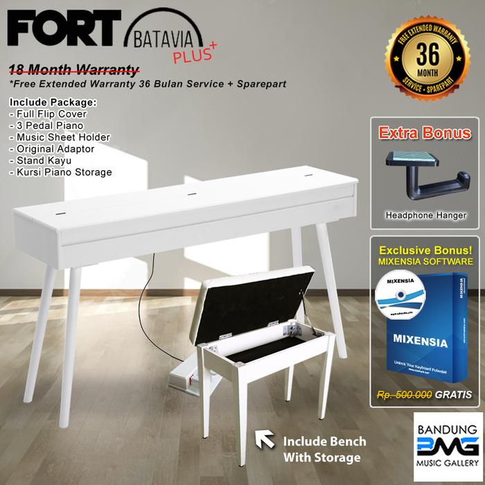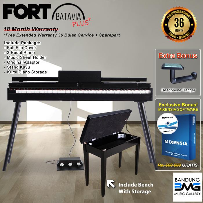 Fort Batavia Plus Digital Piano hadir 100% baru dan original dengan garansi resmi 3 tahun yang mencakup service dan sparepart. Beli dengan nyaman, kami siap membantu proses klaim garansi. Setiap unit sudah termasuk adaptor original dan penjepit partitur (music sheet holder).