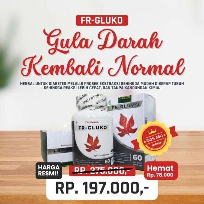 Percayakan kesehatan Anda pada FR-GLUKO, pilihan tepat untuk membantu mengendalikan gejala diabetes secara alami. Tiada hal yang mustahil dengan ikhtiar dan doa.