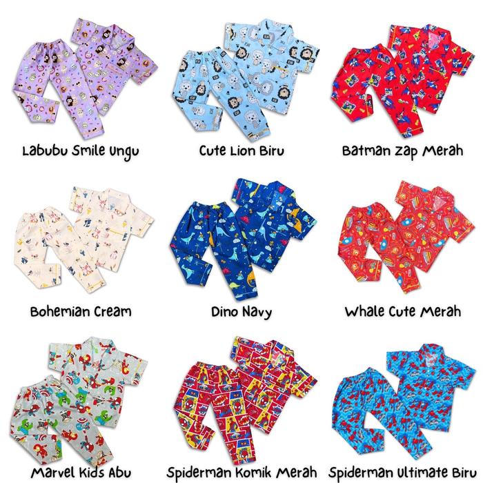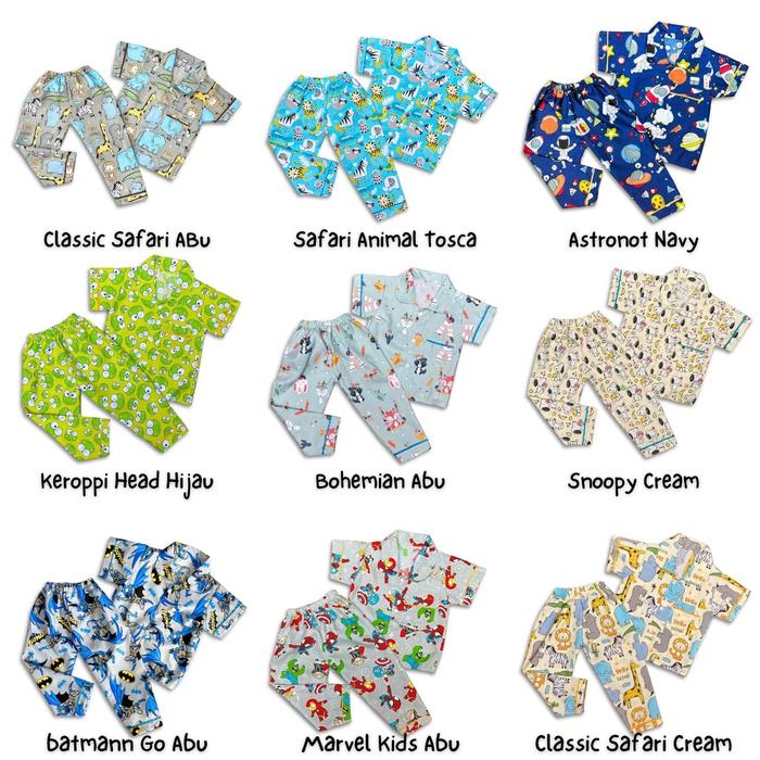 | Desain | Setelan lengan pendek + celana panjang dengan kancing dan saku depan |