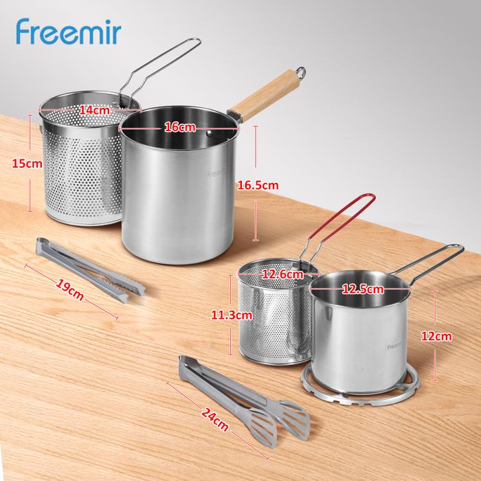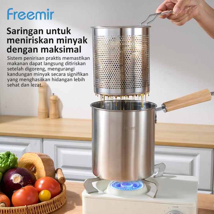 Tingkatkan pengalaman memasak Anda dengan Freemir Panci Deep Fryer. Hadir dalam dua ukuran, 12 cm dan 16 cm, yang terbuat dari material Stainless Steel berkualitas tinggi untuk hasil gorengan yang sempurna dan tahan lama.