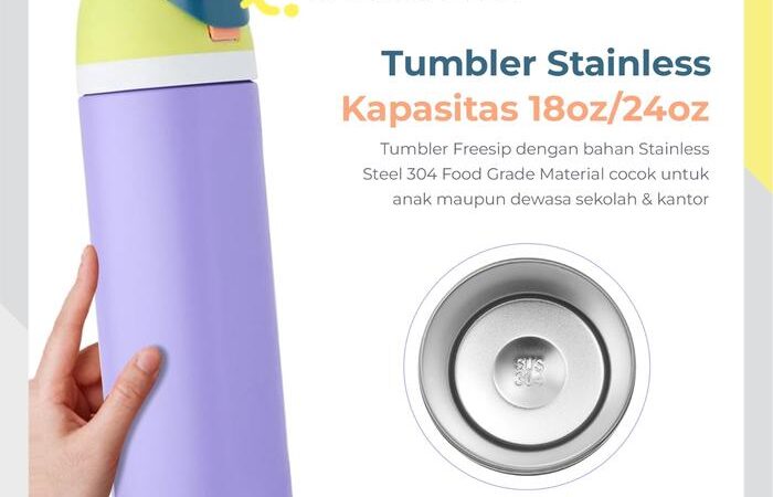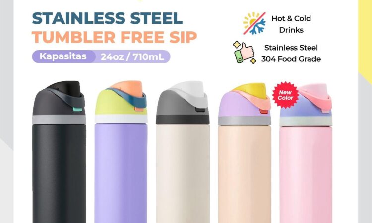 Tumbler Freesip hadir dengan desain aesthetic yang memikat, terbuat dari material stainless steel SUS304 berkualitas tinggi. Botol ini tidak hanya tampil stylish tetapi juga sangat fungsional, mampu menjaga minuman tetap dingin hingga 10 jam atau panas hingga 8 jam, tergantung kondisi penggunaan. Dilengkapi dengan tutup anti tumpah dan silicone ring, Freesip Tumbler aman dibawa ke mana saja. Bebas BPA dan food grade, menjamin keamanan untuk kesehatan Anda. Tersedia dalam berbagai pilihan warna menarik dan kapasitas yang beragam, cocok untuk menemani aktivitas sehari-hari baik di dalam maupun luar ruangan.
