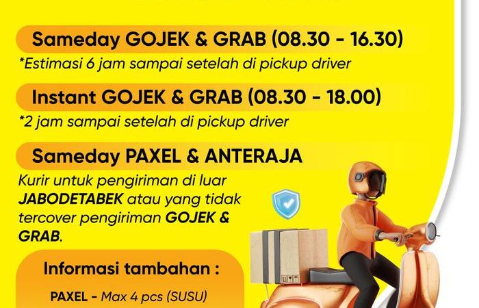 | Sameday Gojek | 08.00 – 14.30 WIB |
