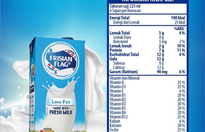 - Low Fat: Kandungan lemak lebih rendah dibanding susu full cream, cocok untuk kontrol asupan kalori.