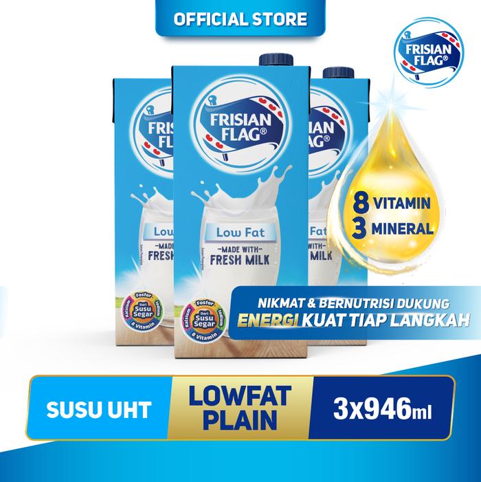 | Isi Paket | 3 x Frisian Flag Purefarm Susu UHT Low Fat 946 ml |