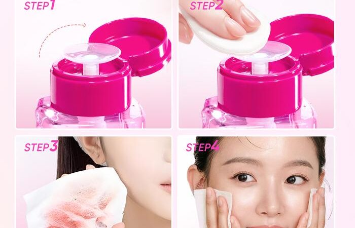 Tuang produk pada kapas, usap lembut ke seluruh wajah, area mata, dan bibir hingga bersih. Tidak perlu dibilas.