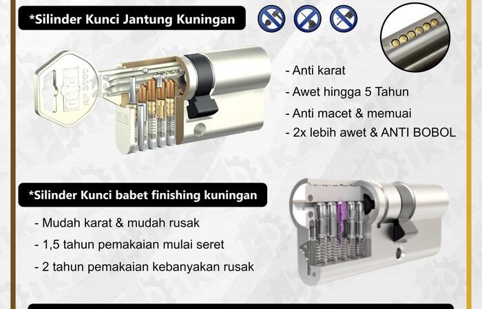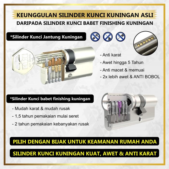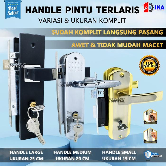 Lengkap Siap Pasang: Setiap paket sudah termasuk sepasang handle, body kunci, silinder, 3 anak kunci, as, dan semua sekrup yang diperlukan.