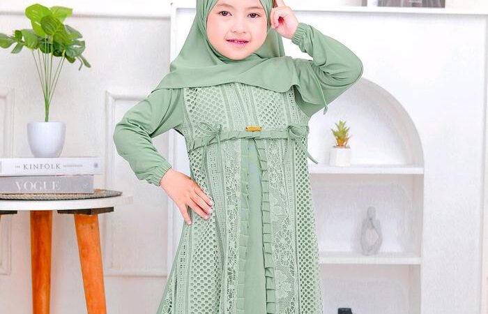 Gamis Anak Starla Kids Set Khimar Brukat Malika – Tampil Syar’i dan Kekinian untuk Si Kecil