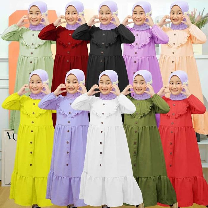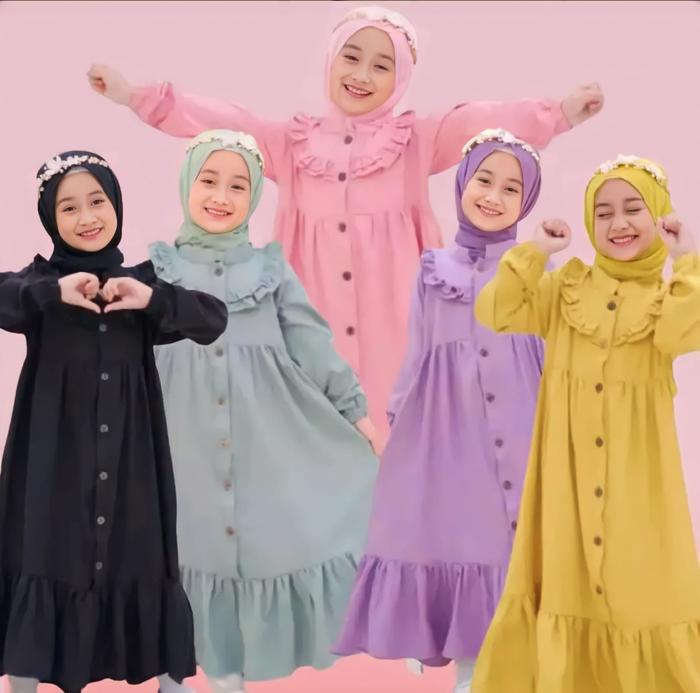 Temukan gamis muslim anak perempuan berkualitas tinggi dengan desain kekinian dan syar’i. Gamis Arisha terbuat dari bahan crinkle airflow premium yang sangat lembut, adem, dan menyerap keringat. Kualitas jahitannya rapi dan warna tidak mudah luntur, membuatnya sangat cocok dipakai untuk ngaji, acara lebaran, maupun sebagai baju sehari-hari yang stylish. Dengan model kancing depan dan kerapihan jahitan, pakaian ini memberikan kesan mewah dan elegan untuk putri tercinta.