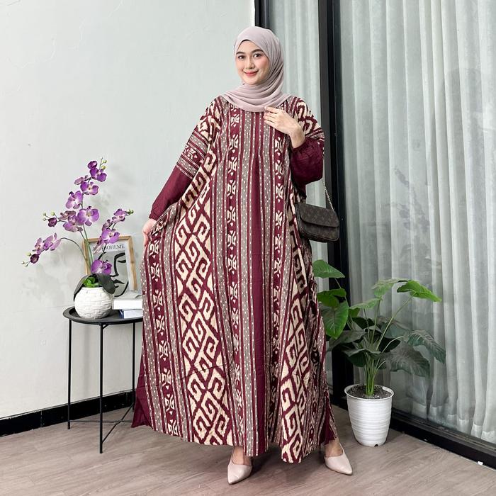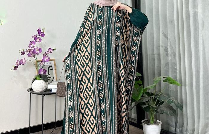 | Desain | Kaftan dengan corak unik dan resleting di depan untuk kemudahan digunakan, termasuk oleh busui. |