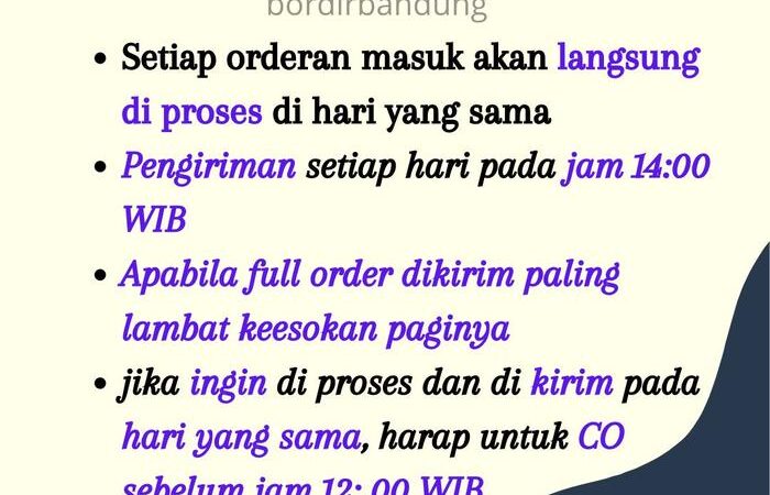 Cara Pemesanan: Tulis nama yang ingin dibordir dan warna benang pilihan Anda di kolom catatan saat checkout. Ikuti format di bawah ini untuk menghindari kesalahan.