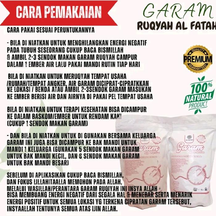 Sebelum digunakan, bacalah “Bismillah” dengan niat memohon perlindungan hanya kepada Allah. Garam ini hanyalah wasilah, segala kesembuhan dan perlindungan datang atas izin-Nya.