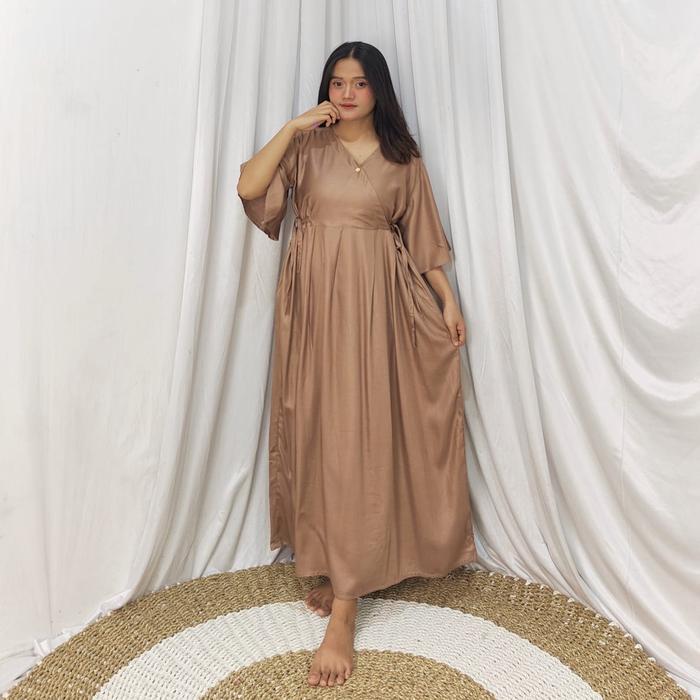 Fitur inovatifnya adalah aksen tali pada kedua sisi yang dapat diikat untuk menciptakan bentuk waistline, mendefinisikan lekuk tubuh Anda tanpa mengurangi kenyamanan. Desain depan terbuka yang praktis menjadikannya sangat bumil dan busui friendly, memudahkan proses menyusui.