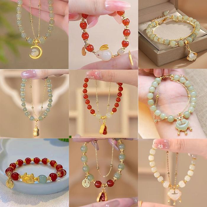 Hadir sebagai aksesori penuh makna untuk menemani hari-hari Anda. Gelang ini memadukan keindahan manik-manik kaca kristal yang berkilauan dengan pesona liontin giok Hetian asli berbentuk kelinci yang melambangkan kemakmuran, kedamaian, dan kesuburan.