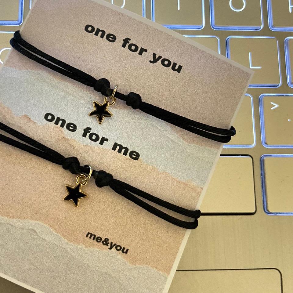 Wujudkan ikatan romantis kalian dengan Gelang Tali Couple Charm Bintang Hitam. Setiap pasangan akan mendapatkan dua gelang yang serasi, simbol kebersamaan yang abadi dan stylish.
