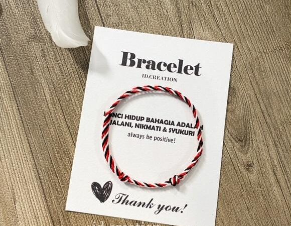 - Gelang Tridatu: Gelang khas Bali yang terdiri dari tiga warna (merah, hitam, dan putih) yang melambangkan tiga kekuatan alam dalam filosofi Hindu Bali (Tri Murti: Brahma, Wisnu, Siwa). Warna-warna ini dipercaya membawa keseimbangan, perlindungan, dan keharmonisan. Meskipun iklan ini menawarkan versi polos, istilah “Tridatu” mengakar pada budaya ini.