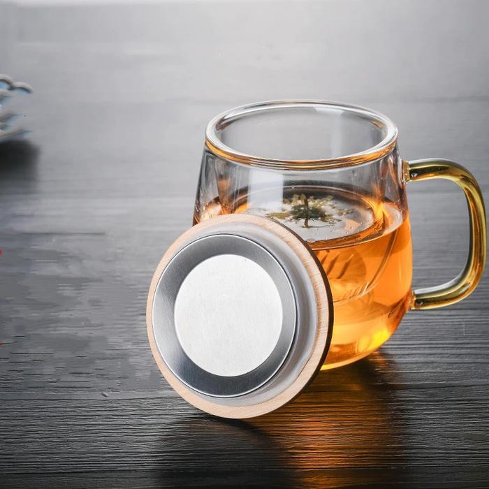 Desainnya memukau dengan badan kaca transparan yang elegan, dipadukan dengan tutup kayu alami yang memberikan kesan hangat dan premium. Setiap tegukan terasa lebih spesial berkat desainnya yang unik dan fungsional.