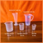 | Gelas Takar Lancip 50ml & 150ml | Bentuk lancip memudahkan penuangan cairan kental tanpa menetes. | Sangat cocok untuk minyak, sirup, saus, dan madu. |