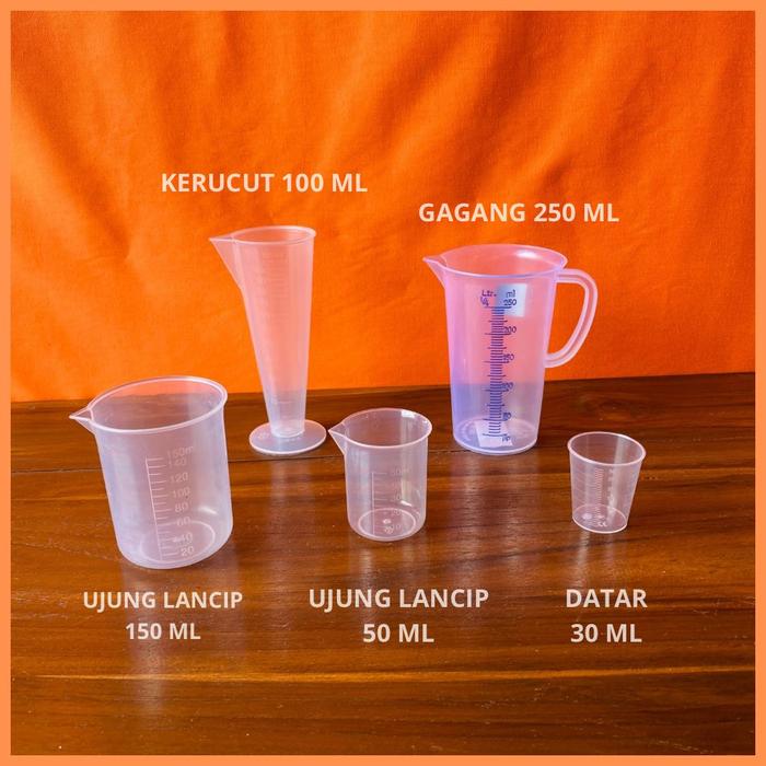 | Gelas Takar Lancip 50ml & 150ml | Bentuk lancip memudahkan penuangan cairan kental tanpa menetes. | Sangat cocok untuk minyak, sirup, saus, dan madu. |
