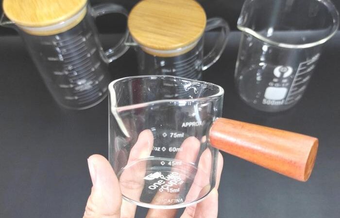 Dapatkan ketepatan dan keandalan dalam setiap takaran dengan gelas ukur kaca premium kami. Alat ini sangat penting bagi para pecinta kopi untuk menyeduh espresso yang sempurna dan bagi profesional di laboratorium kimia untuk praktik yang akurat. Dibuat dari bahan kaca borosilikat yang tahan panas dan kimia, menjadikannya investasi yang tepat untuk penggunaan sehari-hari.