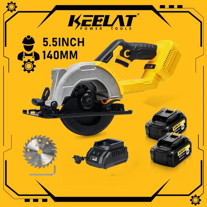 Gergaji Circular Nirkabel KEELAT 5.5″ – Potong Kayu, Plastik, & Marble dengan Presisi!