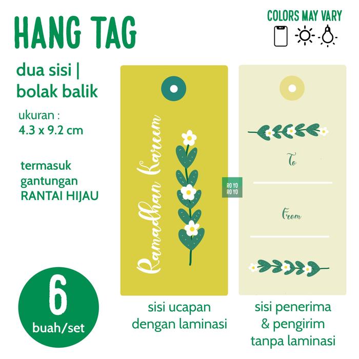 | Mixed RAMADHAN | 2 buah masing-masing | Khusus untuk ucapan Ramadhan, dapatkan 3 desain berbeda (total 6 tag). |