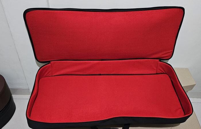 - Beludru: Kain dengan permukaan yang lembut dan berbulu halus, digunakan untuk melapisi bagian dalam tas agar tidak menggores permukaan keyboard.