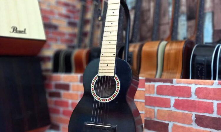 - Paket Komplit: Gitar + Tas + Pik + Senar Cadangan