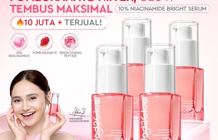 Serum pencerah dengan tekstur ringan dan cepat menyerap, diformulasikan untuk penggunaan harian. Mengandung 10% Niacinamide, Pomegranate (Delima), dan Alpha Arbutin yang bekerja sinergis untuk: