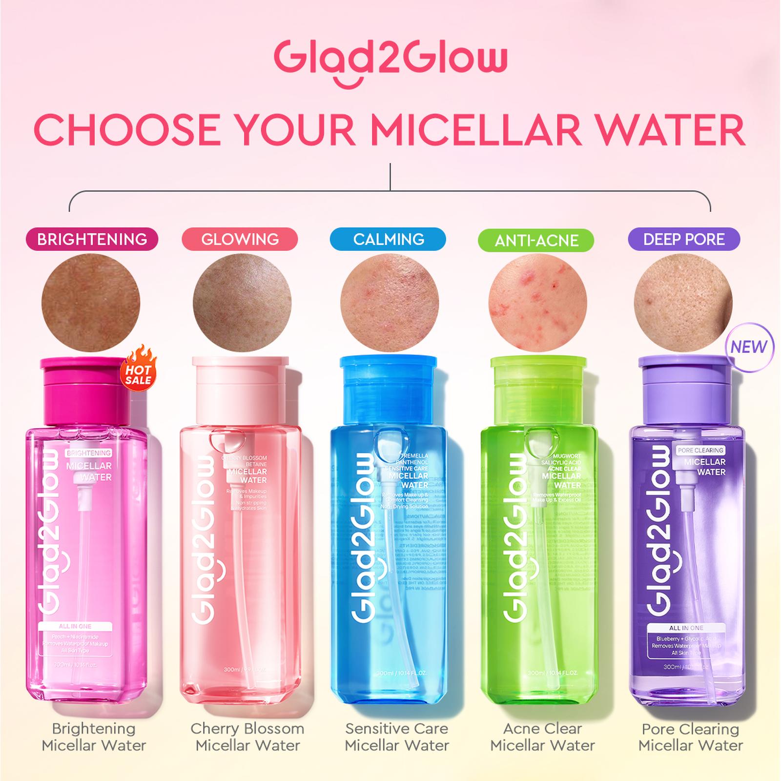 Temukan rangkaian micellar water Glad2Glow yang dirancang khusus untuk menargetkan permasalahan kulit berbeda dengan formula canggih. Setiap varian menghapus makeup waterproof dan kotoran dengan lembut sekaligus memberikan manfaat perawatan kulit intensif, tanpa perlu dibilas dan tanpa rasa lengket.