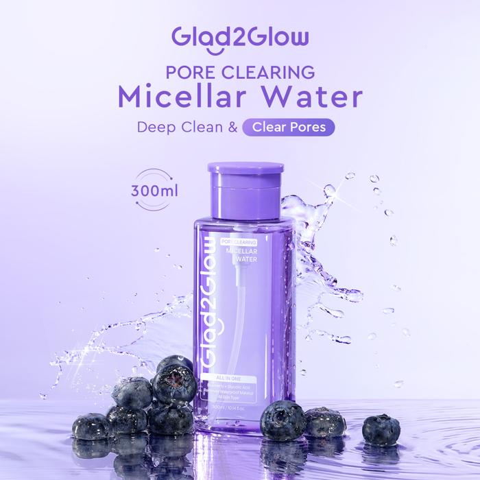 | Pore Clearing Micellar Water | Pori & Minyak | Glycolic Acid, Blueberry Extract, Betaine. Membersihkan pori tersumbat, mengontrol minyak berlebih, dan menghaluskan tekstur kulit. Tersedia dalam 130ml, 230ml, 300ml. | 300 ml – NA11251201985 |