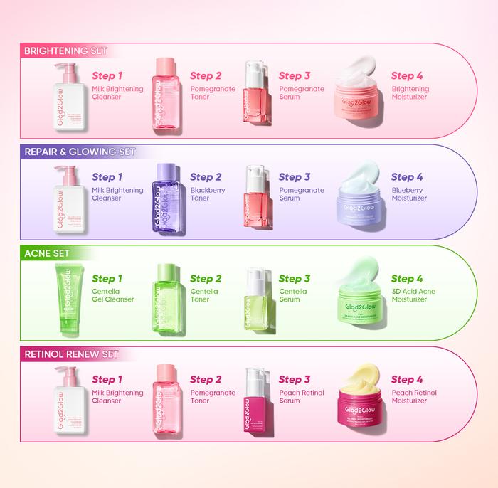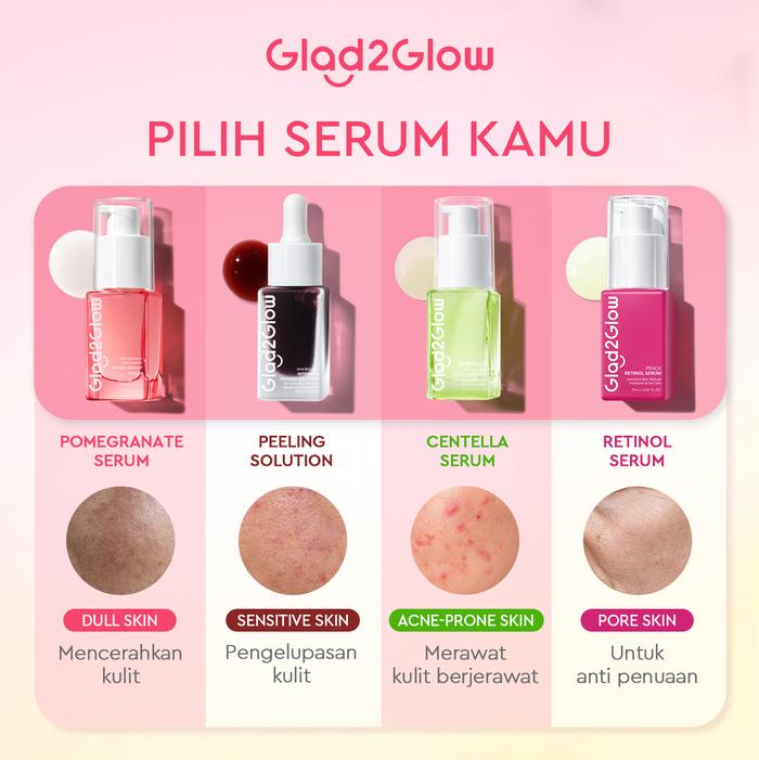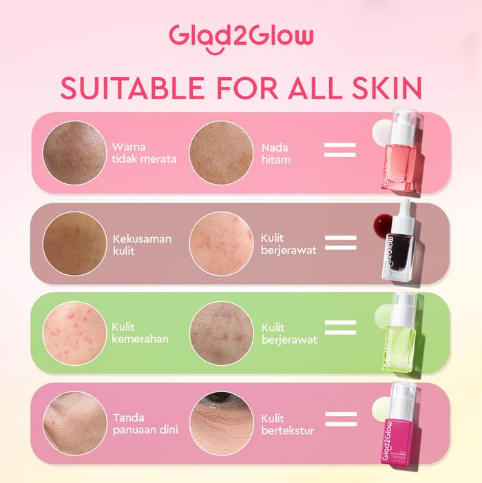 Ready Stock! Dapatkan rangkaian serum Glad2Glow untuk kulit cerah, lembut, dan bebas jerawat.