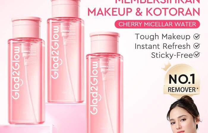 Dapatkan GladGlow Cherry Blossom Micellar Water sekarang untuk kulit bersih, lembab, dan segar sepanjang hari!