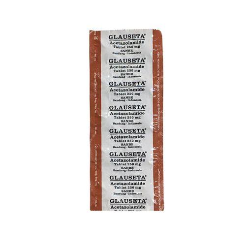 | Deskripsi | Glauseta mengandung azetazolamide 250 mg/tablet untuk mengatasi glaukoma dan gangguan jantung kongestif. Penggunaan obat harus sesuai petunjuk dokter. |