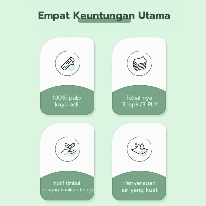 | Keunggulan Utama | Hypoallergenic, Daya Serap Tinggi, Kuat tidak mudah robek, Ramah Lingkungan |