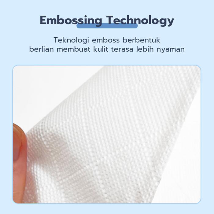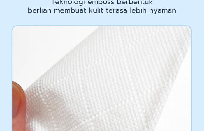 | Keunggulan | Daya serap tinggi, tidak mudah robek saat basah, teksturnya sangat lembut dan tidak menimbulkan iritasi. |