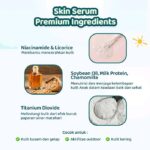 - Titanium Dioxide: Mineral yang berfungsi sebagai tabir surya fisik dengan melindungi kulit dari paparan sinar UVA/UVB.