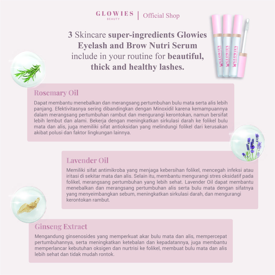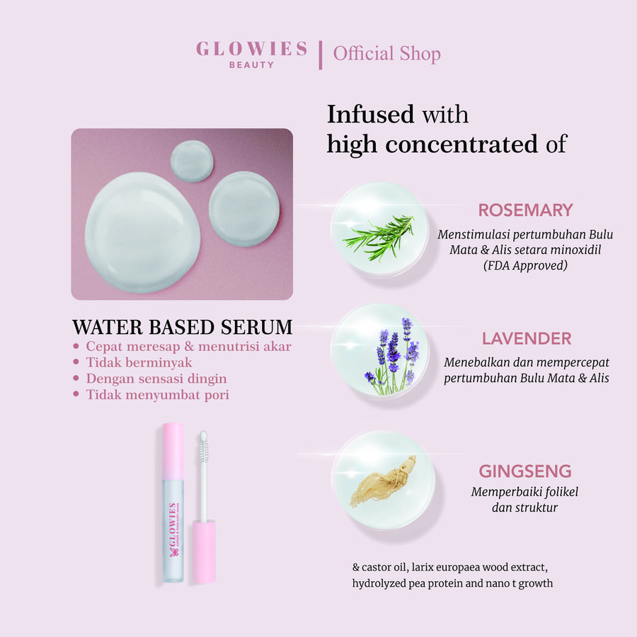 Serum revolusioner untuk bulu mata dan alis dengan formula kaya nutrisi yang menggabungkan bahan-bahan alami berkualitas tinggi seperti Castor Oil, Rosemary Oil, Lavender Oil, Ginseng Extract, Larix Europea Wood Extract, dan Hydrolyzed Pea Protein. Dirancang untuk merawat, memperkuat, memanjangkan, serta menutrisi bulu mata dan alis secara alami dalam waktu singkat.