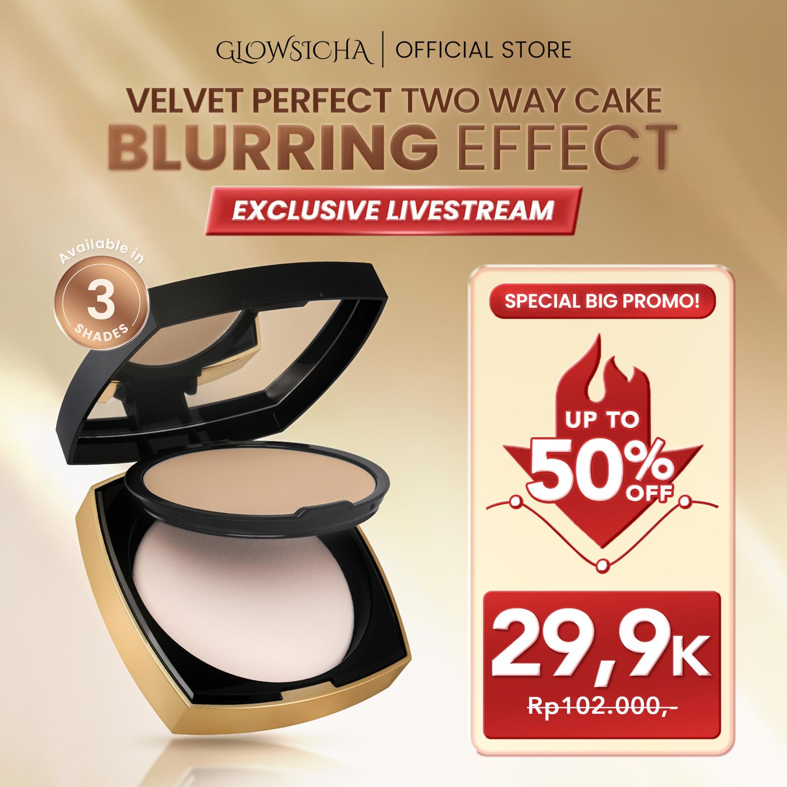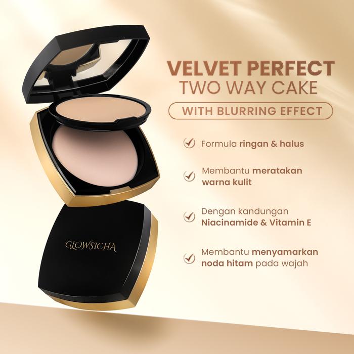 Diformulasikan dengan Niacinamide dan Vitamin E, produk ini tidak hanya menutupi ketidaksempurnaan tetapi juga aktif bekerja untuk mencerahkan kulit dan melindunginya dari dampak buruk radikal bebas. Hasilnya adalah kulit yang tidak hanya tampak halus, tetapi juga terasa lembap dan sehat. Glowsicha Velvet Perfect Two Way Cake menjamin tampilan bebas minyak (no greasy) dan bebas dari kesan menggumpal (no cakey), sehingga nyaman digunakan sehari-hari.
