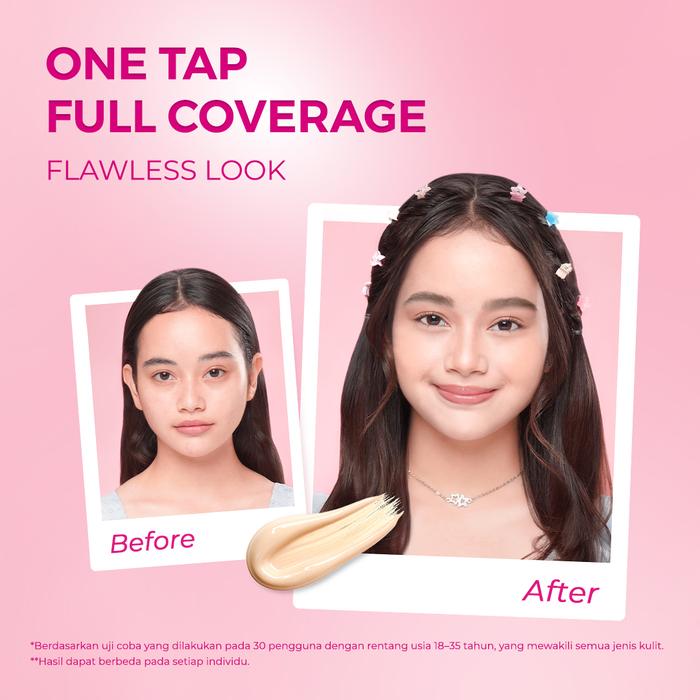 Keunggulannya tidak berhenti di coverage. Formula inovatifnya diperkaya dengan bahan-bahan skincare seperti Niacinamide untuk mencerahkan dan mengontrol minyak, Panthenol untuk menenangkan dan melembapkan, serta Ekstrak Buah Naga yang kaya antioksidan. Perpaduan ini menghasilkan finish velvet to matte yang elegan dan natural, serta menjaga kulit tetap sehat sepanjang hari.