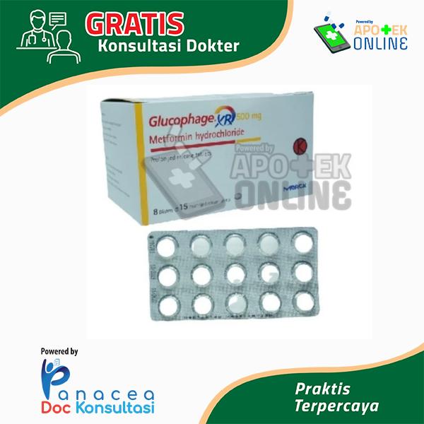 Glucophage XR 500 Mg mengandung metformin, obat antidiabetes oral yang bekerja dengan meningkatkan sensitivitas insulin dan mengurangi produksi glukosa hati. Direkomendasikan bersama diet sehat dan olahraga untuk manajemen diabetes tipe 2 pada dewasa.