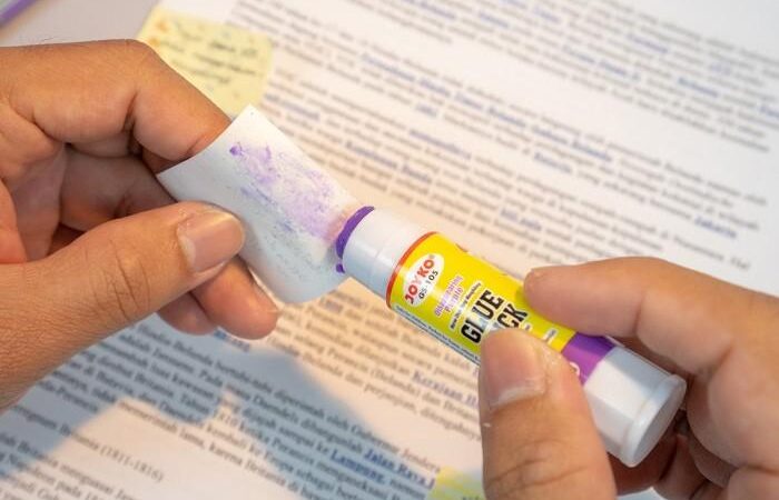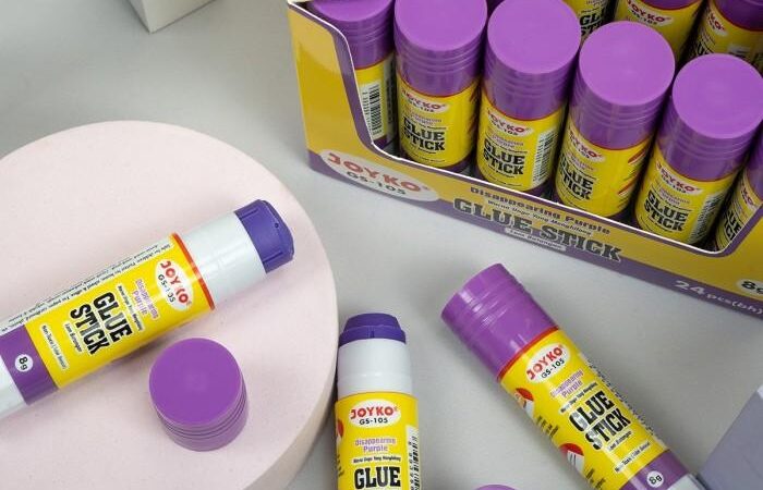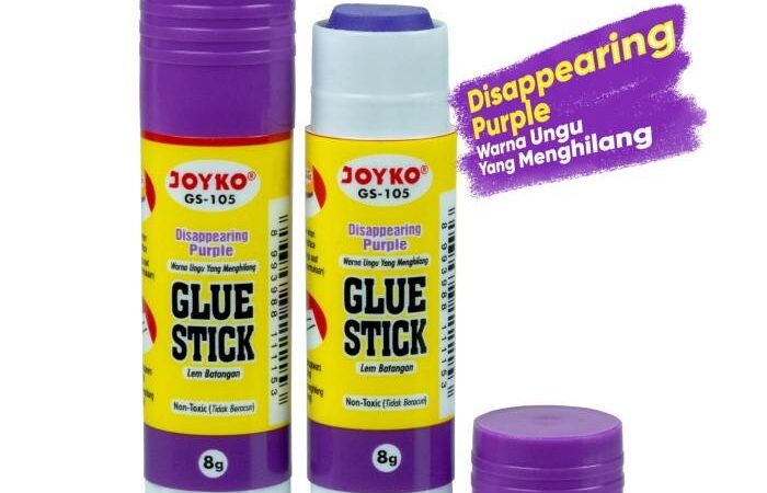 - Disappearing Purple (Warna Ungu yang Menghilang): Fitur pada lem batang dimana warna ungu saat dioleskan akan berubah menjadi transparan atau bening setelah kering, sehingga tidak terlihat pada hasil akhir karya.