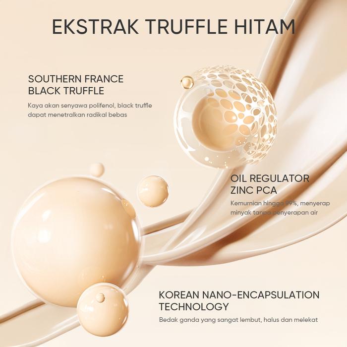 | Kandungan Unggulan | Black Truffle, PCA Zinc, dan Niacinamide untuk mengontrol minyak, menenangkan kulit, dan melawan radikal bebas penyebab penuaan dini. |