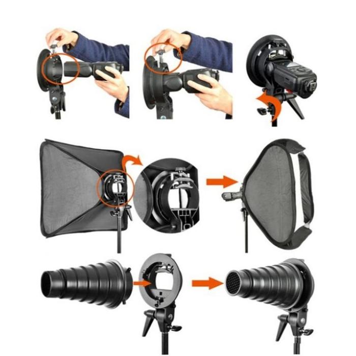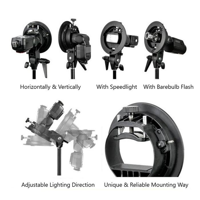 Wujudkan pencahayaan studio kreatif dengan mudah untuk speedlite Anda. Bracket S-Type dari Godox adalah solusi all-in-one yang revolusioner untuk menghubungkan flash portable Anda dengan berbagai aksesori pencahayaan profesional berstandar Bowens.