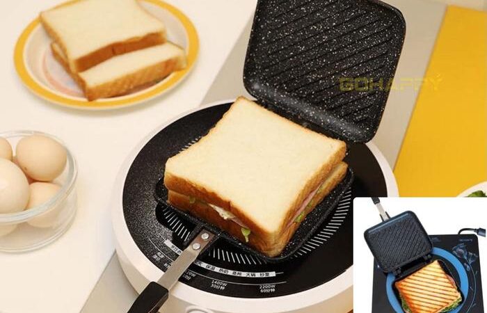 - Double Pan Side: Desain dua sisi cetakan yang memungkinkan Anda membalik seluruh alat dengan mudah untuk memasak kedua sisi makanan secara bersamaan.