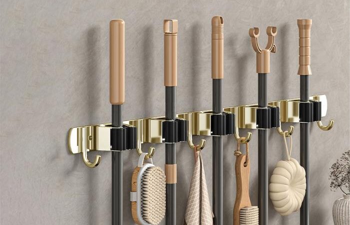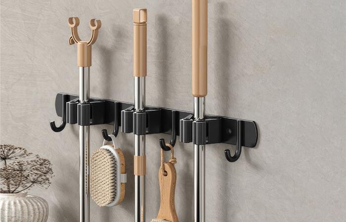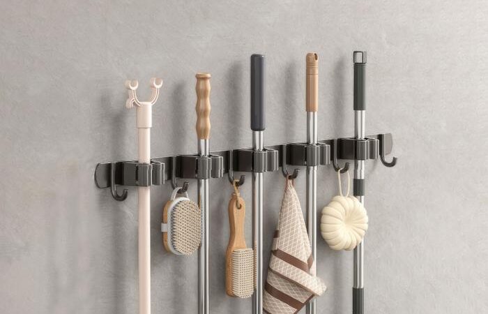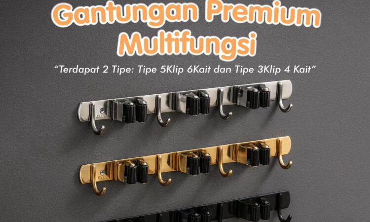 Organisasi maksimal untuk area kebersihan rumah Anda. Gantungan dinding model rel ini didesain dengan kombinasi klip dan kait untuk menyimpan berbagai perlengkapan rumah tangga seperti sapu, pel, alat kebersihan, hingga tas ringan secara rapi dan mudah dijangkau.