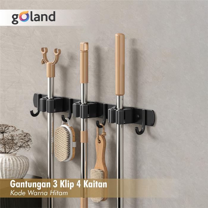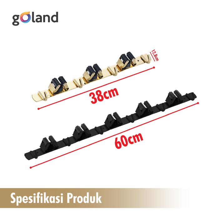 Organisasi maksimal untuk area kebersihan rumah Anda. Gantungan dinding model rel ini didesain dengan kombinasi klip dan kait untuk menyimpan berbagai perlengkapan rumah tangga seperti sapu, pel, alat kebersihan, hingga tas ringan secara rapi dan mudah dijangkau.