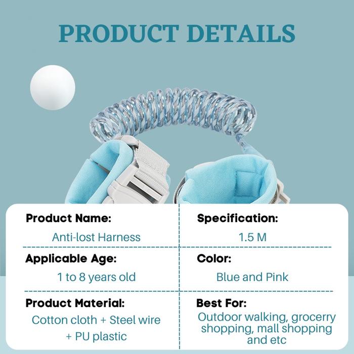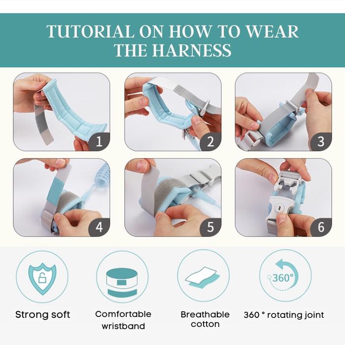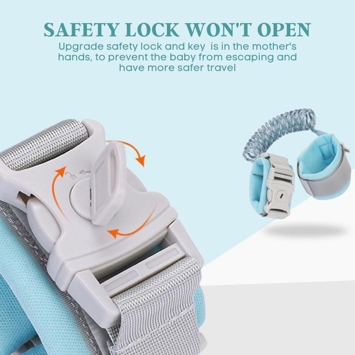Fitur utama produk ini adalah sistem pengait yang dapat berputar 360 derajat, memberikan kebebasan bergerak bagi anak tanpa membuat tali terlilit. Keamanan dijaga oleh dua pilihan mekanisme pengunci super aman yang tidak dapat dibuka oleh anak-anak, memastikan si kecil tetap terhubung dengan Anda.